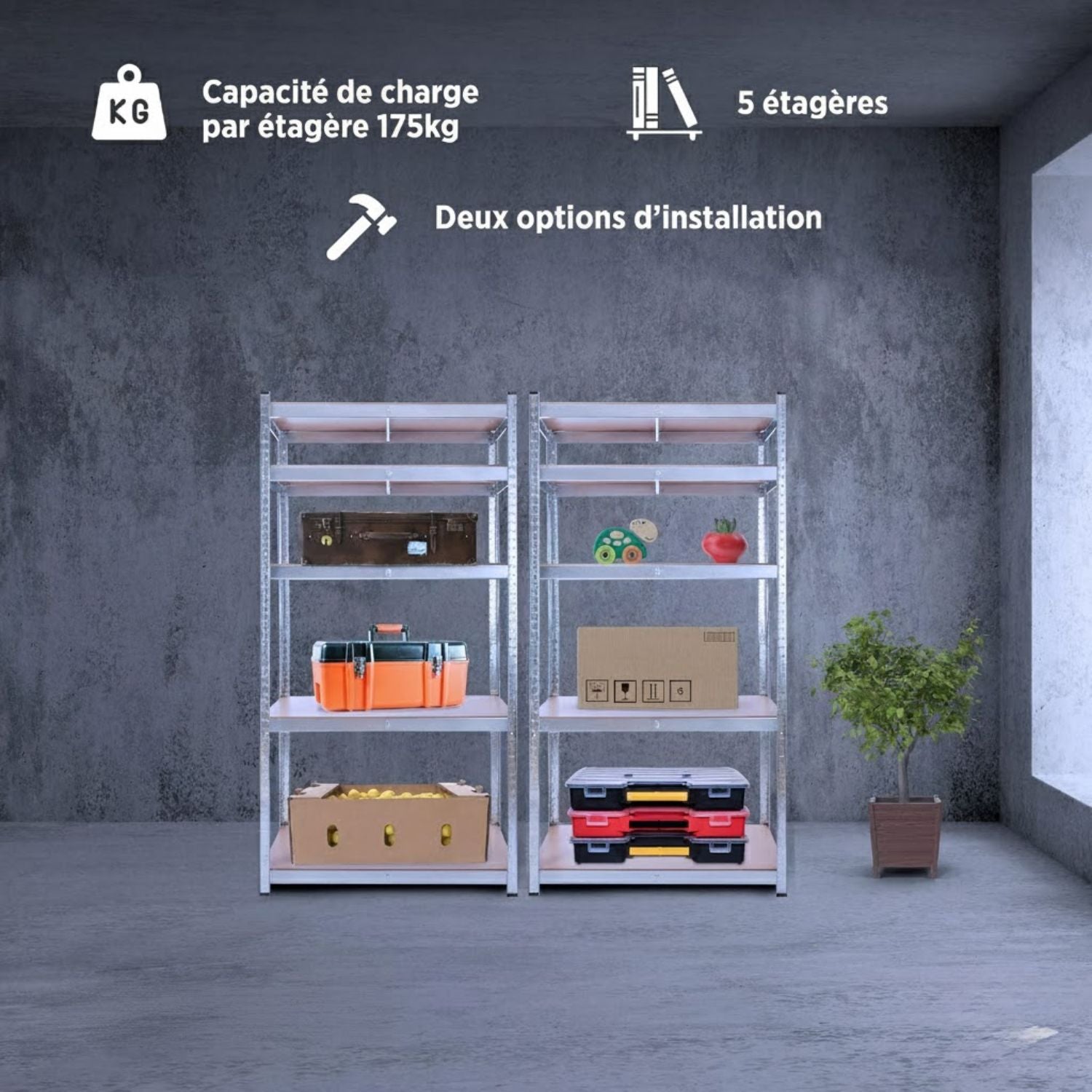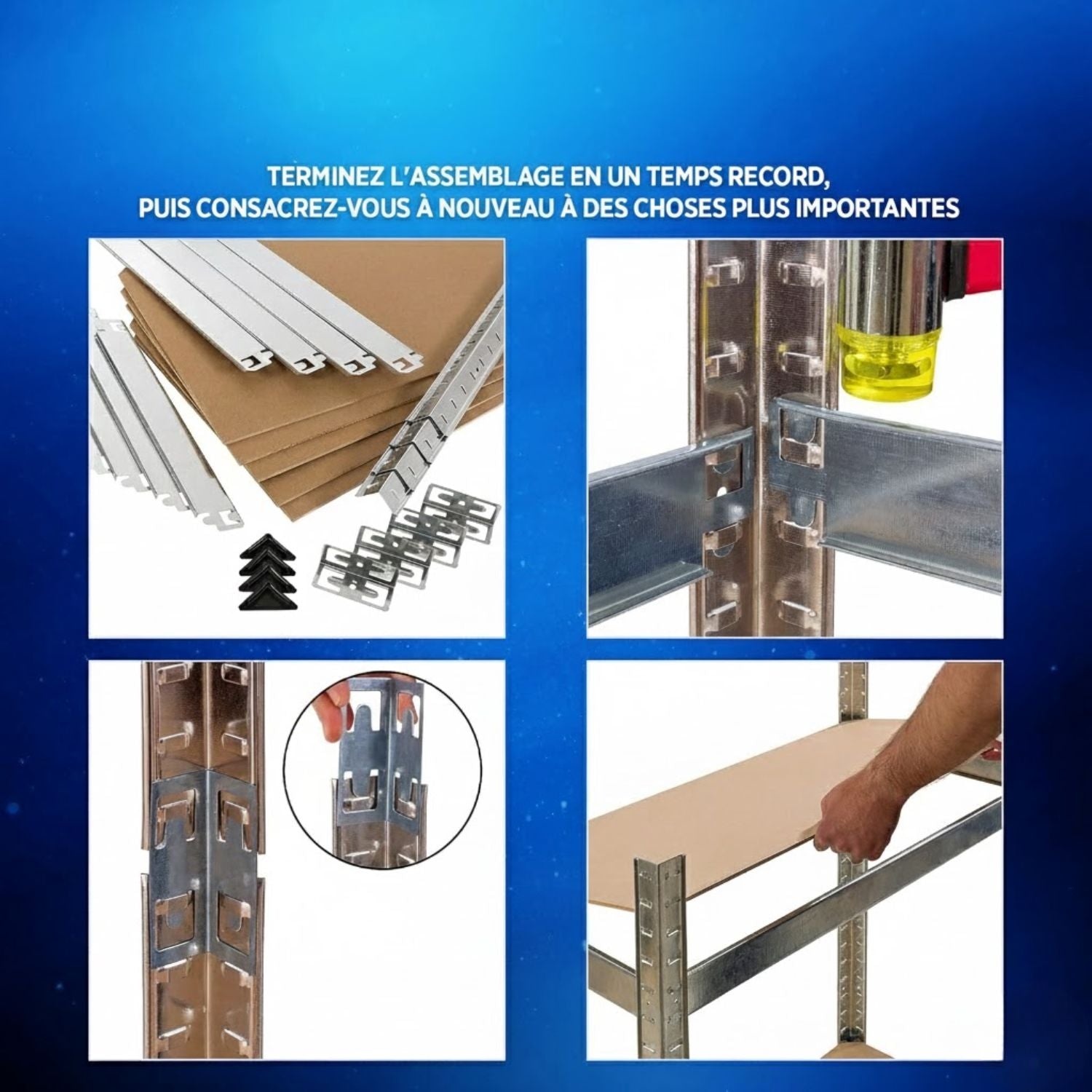 Optimisez votre espace et organisez votre garage, atelier, cave ou bureau avec cette étagère robuste et polyvalente. Sa conception solide en métal galvanisé et panneaux MDF épais garantit une stabilité maximale pour vos charges lourdes. Facile à monter, modulable et durable, elle deviendra rapidement un indispensable pour tout rangement efficace.