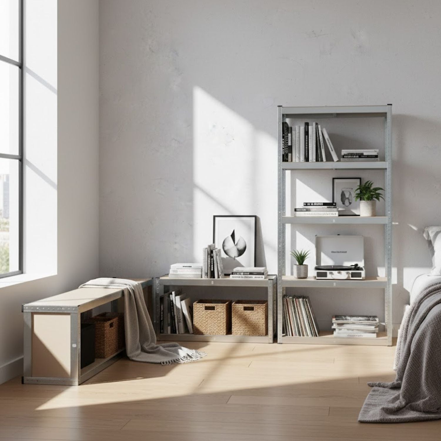 • Polyvalente : utilisable comme étagère de rangement ou établi.